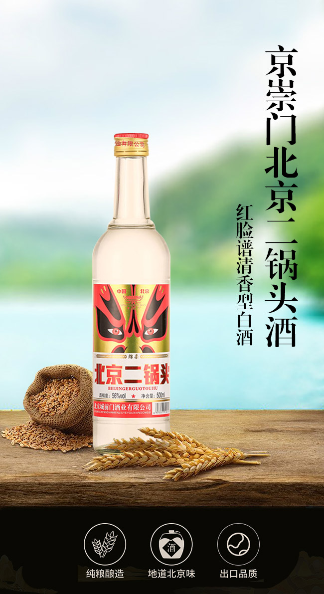 產(chǎn)品名:京崇門北京二鍋頭酒紅臉譜清香型白酒【42°56°500ml】