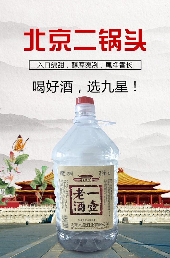 北京九星酒業(yè)有限公司是一家集產(chǎn)品研發(fā),生產(chǎn)銷售為一體的現(xiàn)代化白酒規(guī)模企業(yè)。目前開發(fā)的主要是皇城門系列白酒產(chǎn)品。是以優(yōu)質(zhì)高粱為主要原料,用大麥、小麥、豌豆制成大曲,輔多種微生物為糖化酵劑,再經(jīng)過長期發(fā)酵,緩慢蒸餾,取之精華,經(jīng)多年陳貯后,精心勾兌而成。以“清香幽雅,醇厚綿甜,尾昧爽凈”的獨(dú)特風(fēng)格,深受各界朋友的青睞。