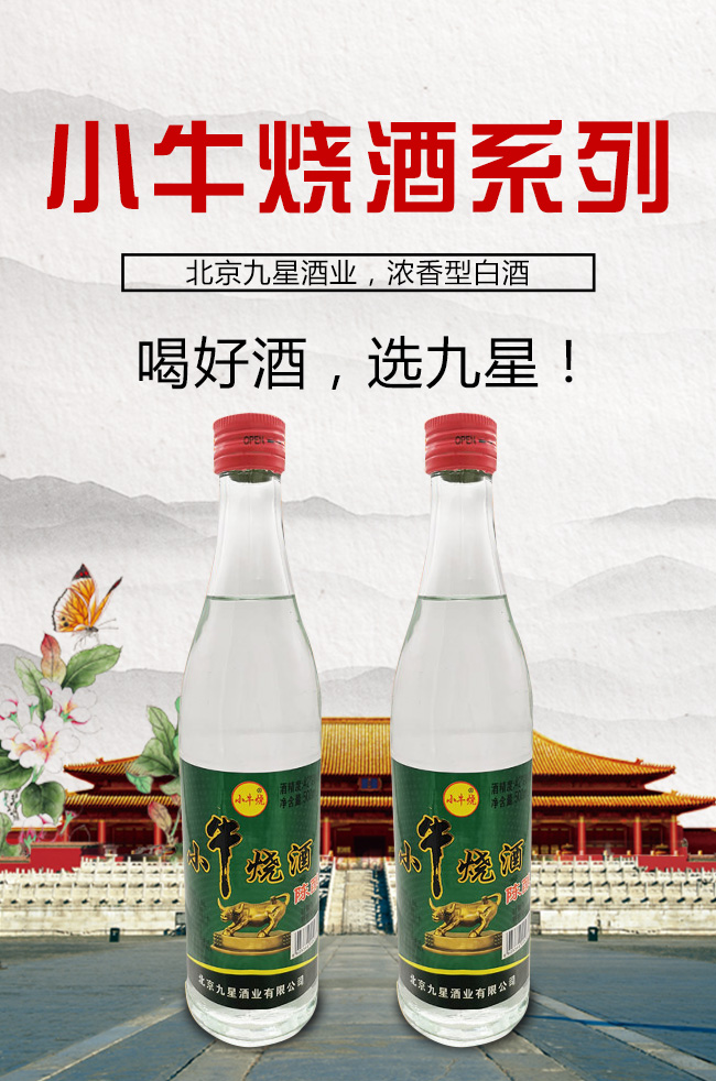 北京九星酒業(yè)有限公司是一家集產(chǎn)品研發(fā),生產(chǎn)銷售為一體的現(xiàn)代化白酒規(guī)模企業(yè)。目前開發(fā)的主要是皇城門系列白酒產(chǎn)品。是以優(yōu)質(zhì)高粱為主要原料,用大麥、小麥、豌豆制成大曲,輔多種微生物為糖化酵劑,再經(jīng)過長期發(fā)酵,緩慢蒸餾,取之精華,經(jīng)多年陳貯后,精心勾兌而成。以“清香幽雅,醇厚綿甜,尾昧爽凈”的獨(dú)特風(fēng)格,深受各界朋友的青睞。