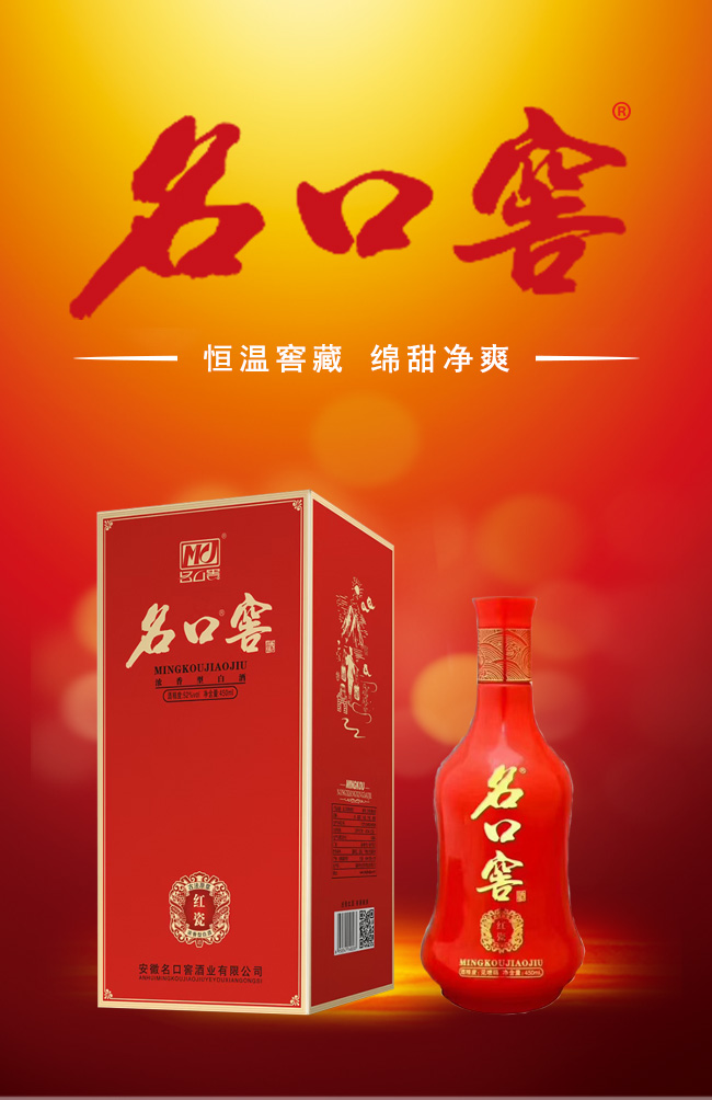 產(chǎn)品名:名口窖酒紅瓷濃香型白酒【52°450ml】