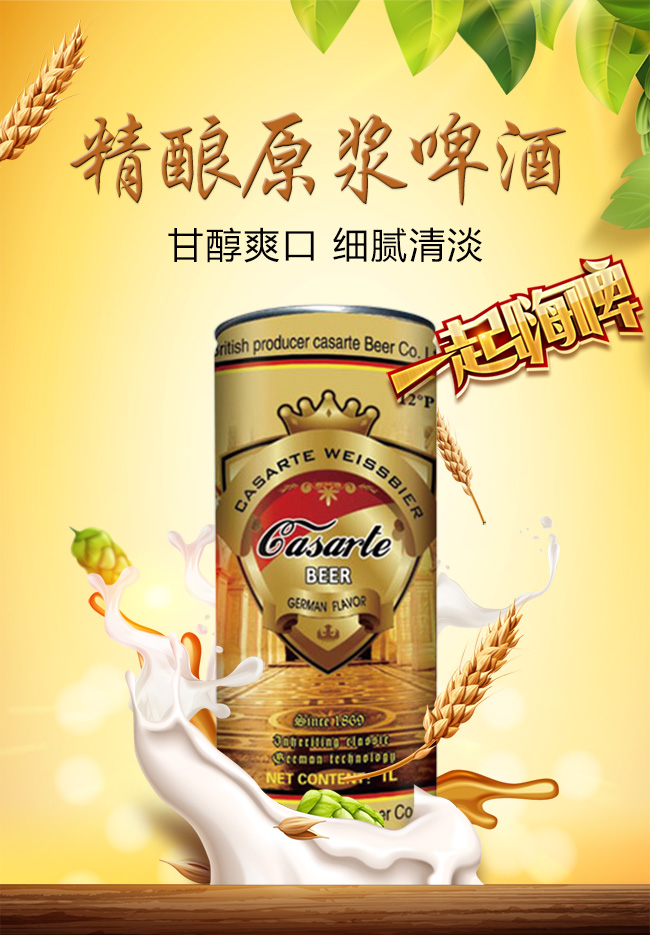 我公司精選優(yōu)級進口麥芽、啤酒花、優(yōu)級大米、上等酵母,采用優(yōu)級純凈水,超低溫長時間發(fā)酵,啤酒風味保鮮技術密閉隔氧,全過程純凈化釀造,使酒液清澈透明,純凈自然,口味清爽,更加適合消費者的消費需求。合理的保持了啤酒的各種營養(yǎng)成分,其色澤金黃透明,泡沫潔白細膩、掛杯持久、純爽柔和、麥香味濃郁。