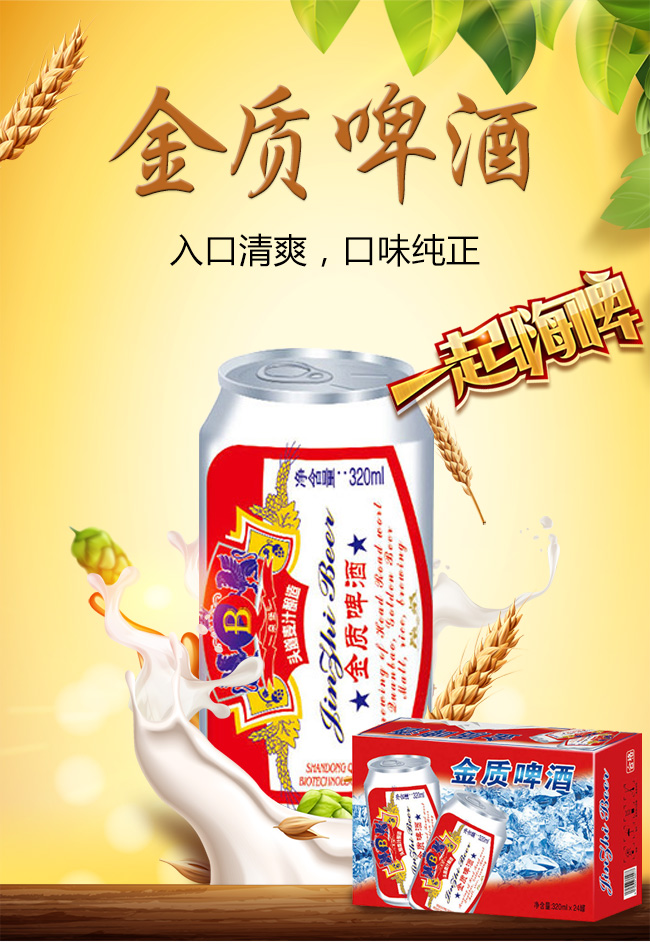 產(chǎn)品名:金質(zhì)啤酒【8°320ml×24罐】