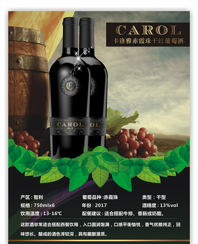 產品名:卡洛雅赤霞珠干紅葡萄酒13°750ml