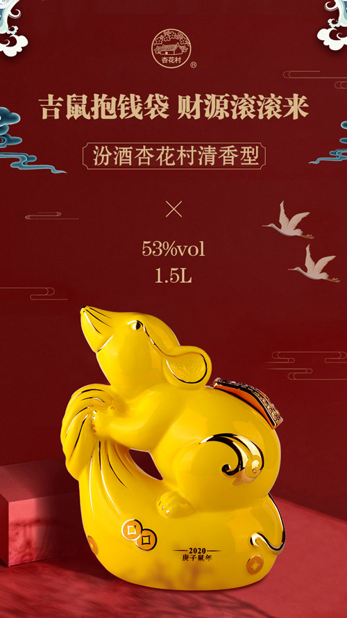 汾酒杏花村白酒禮盒53度2020鼠年生肖酒年價(jià)格:1298元/瓶
