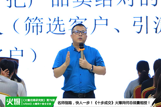 5月30日,由火爆網聯合創(chuàng)始人、總經理何仁平主講的火爆招商研究院第79期《十步成交》激情開講!為各企業(yè)學員重塑自身,實力為各企業(yè)學員答疑招商解惑,指導實戰(zhàn),現場氣氛火熱,干貨不斷!