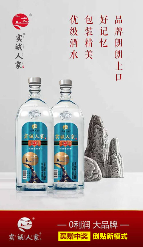 光瓶酒市場極大,好的產(chǎn)品,輔之以好的推廣,一定能有一番天地。對(duì)于經(jīng)銷商而言,產(chǎn)品品質(zhì)、顏值、廠家重視程度、市場活動(dòng)頻率也都是重要參考因素。山東實(shí)誠人酒業(yè)有限公司是一家從事白酒生產(chǎn)、銷售的現(xiàn)代化白酒生產(chǎn)企業(yè),公司審時(shí)度勢,隆重推出零利潤·大品牌·買贈(zèng)倒貼·新模式,實(shí)現(xiàn)真正的買贈(zèng)倒貼,解決酒水市場不動(dòng)銷、動(dòng)銷慢的市場難題!讓消費(fèi)者競相購買,零售商利潤大、渠道暢通,代理商化被動(dòng)為主動(dòng)實(shí)現(xiàn)銷量化、利潤化!